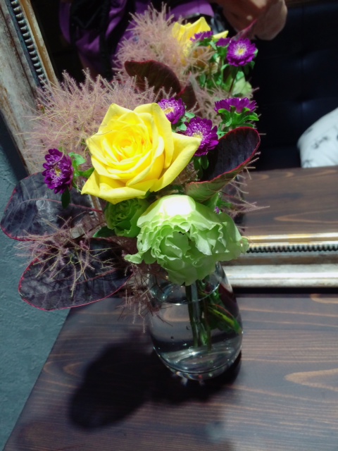 Mっちさん、開店祝に素敵なお花と子供にカーディガンをプレゼント